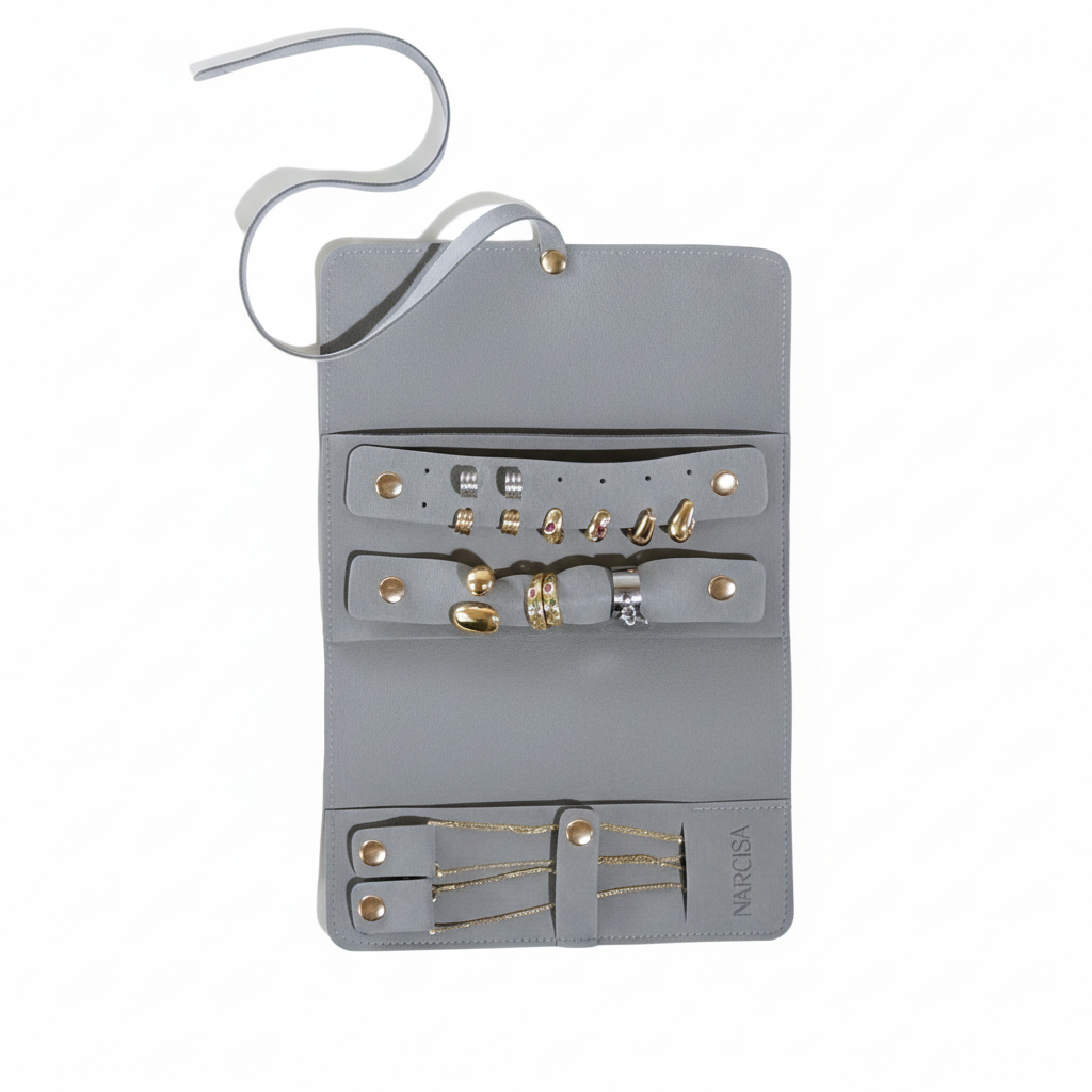 Protege tus joyas más valiosas con este estuche de viaje imprescindible. Diseñado con compartimentos especializados, evita que tus accesorios favoritos se dañen, se pierdan o se enreden durante tus aventuras. Su tamaño compacto cabe perfectamente en cualquier equipaje, mientras que su construcción resistente garantiza durabilidad en cada viaje. No dejes que la falta de organización arruine tus piezas preciadas: invierte en un estuche que cuida lo que más importa.
